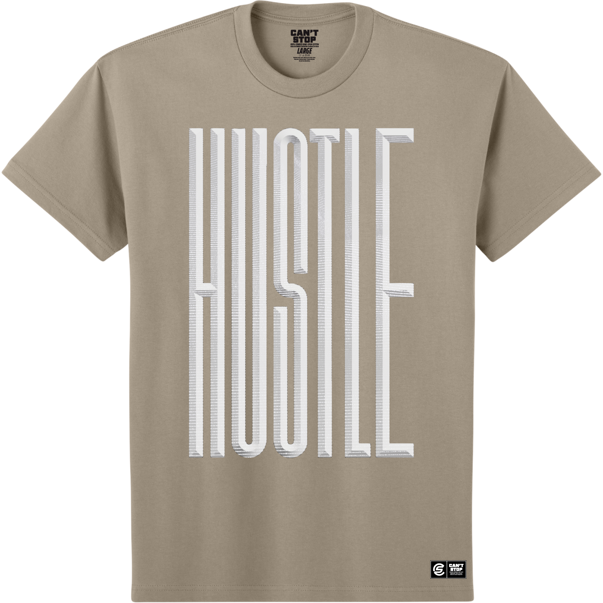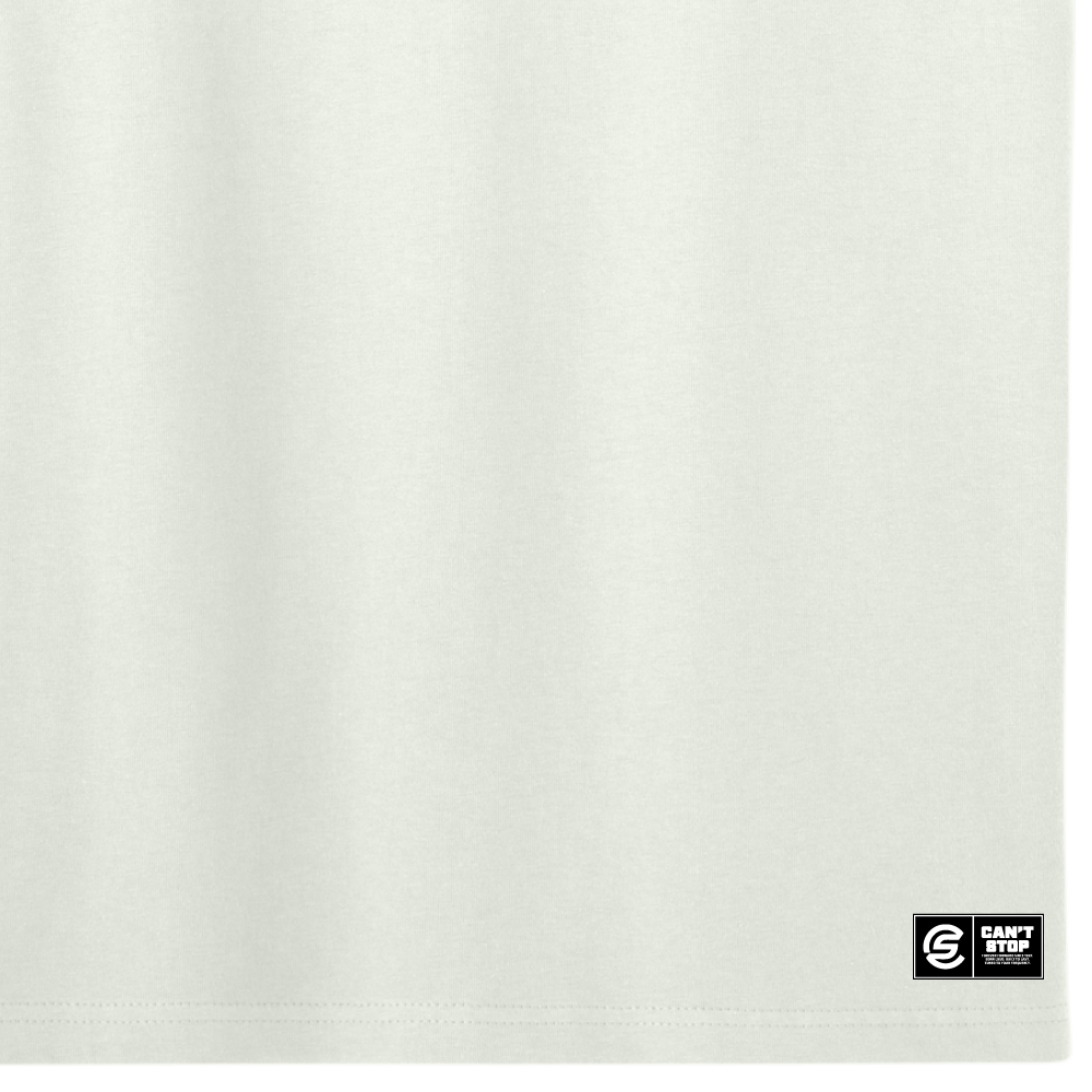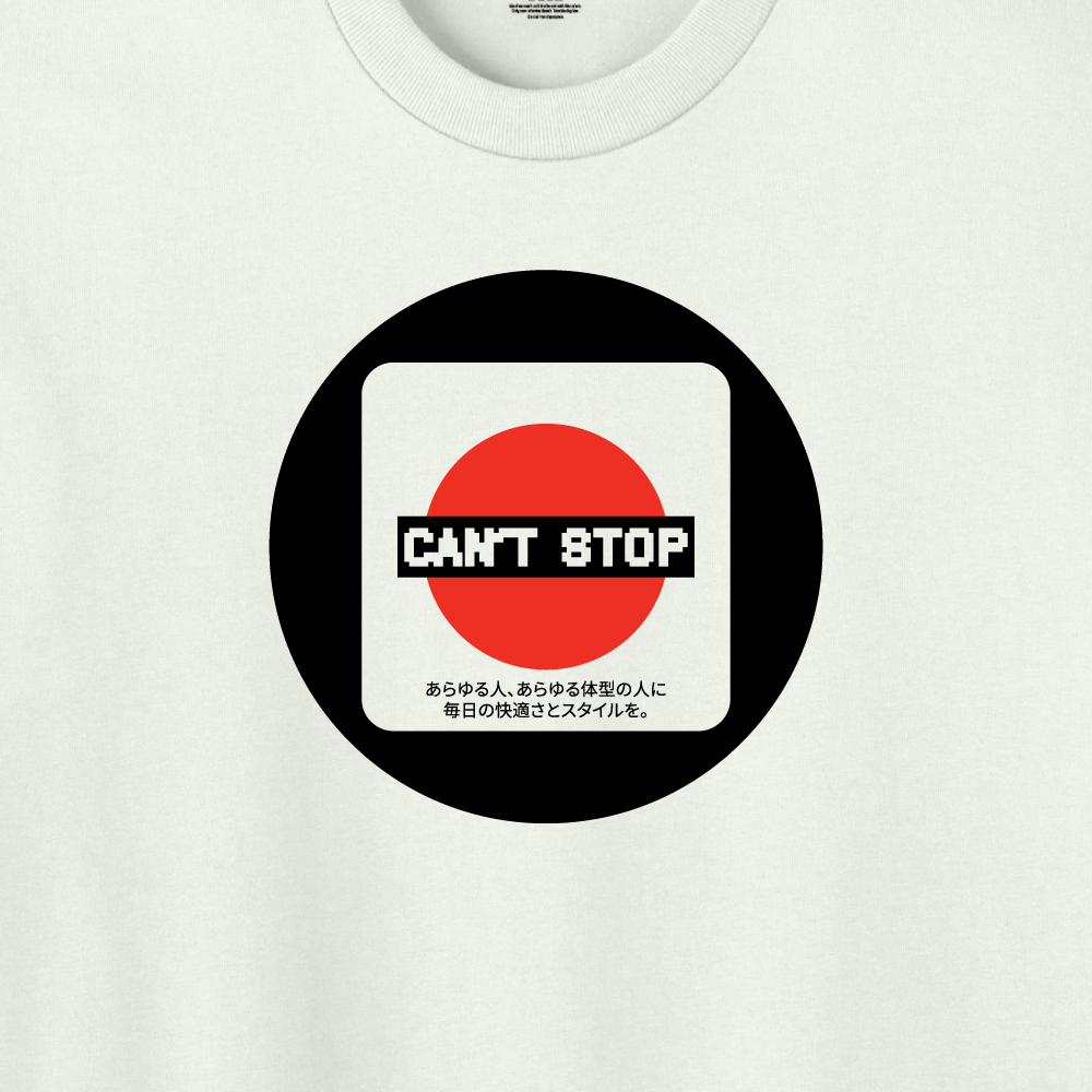 - Heat pressed Can’t Stop signature label at bottom left hem